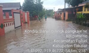 Banjir yang terjadi akibat curah hujan tinggi telah merendam rumah-rumah warga dan memutus akses ke beberapa area. Meski pihak kepolisian setempat, seperti yang dilakukan oleh Bhabinkamtibmas polres takalar telah melakukan pemantauan di lokasi rawan banjir di Lingkungan Patte’ne ,