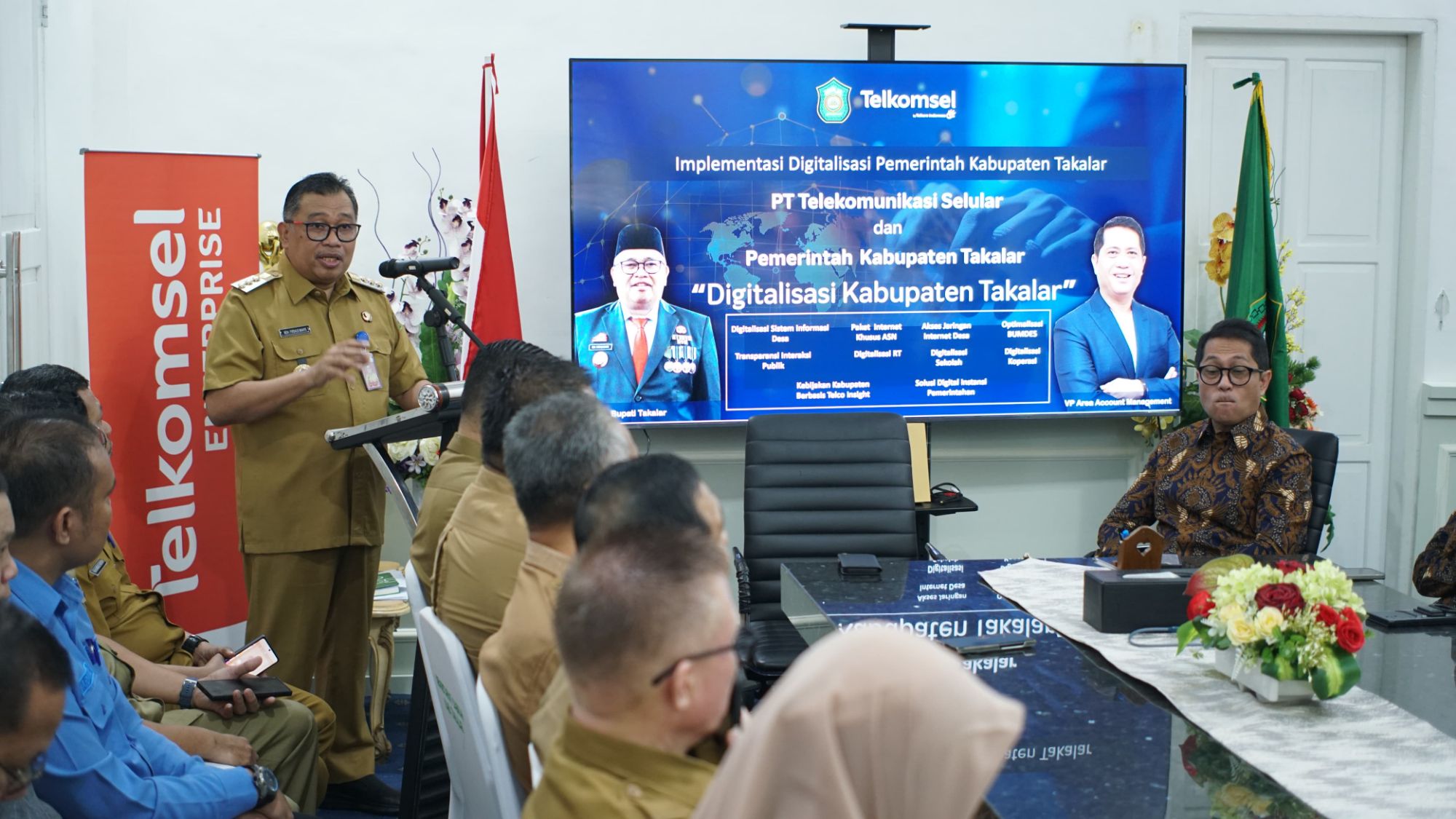 Selain Sekretaris Daerah Kab. Takalar dan  Pimpinan OPD Kab. Takalar, juga dihadiri Vice President Area Account Management PT. Telkomsel Nyoman Adiasa Pt. Telekomunikasi Seluler beserta jajarannya.