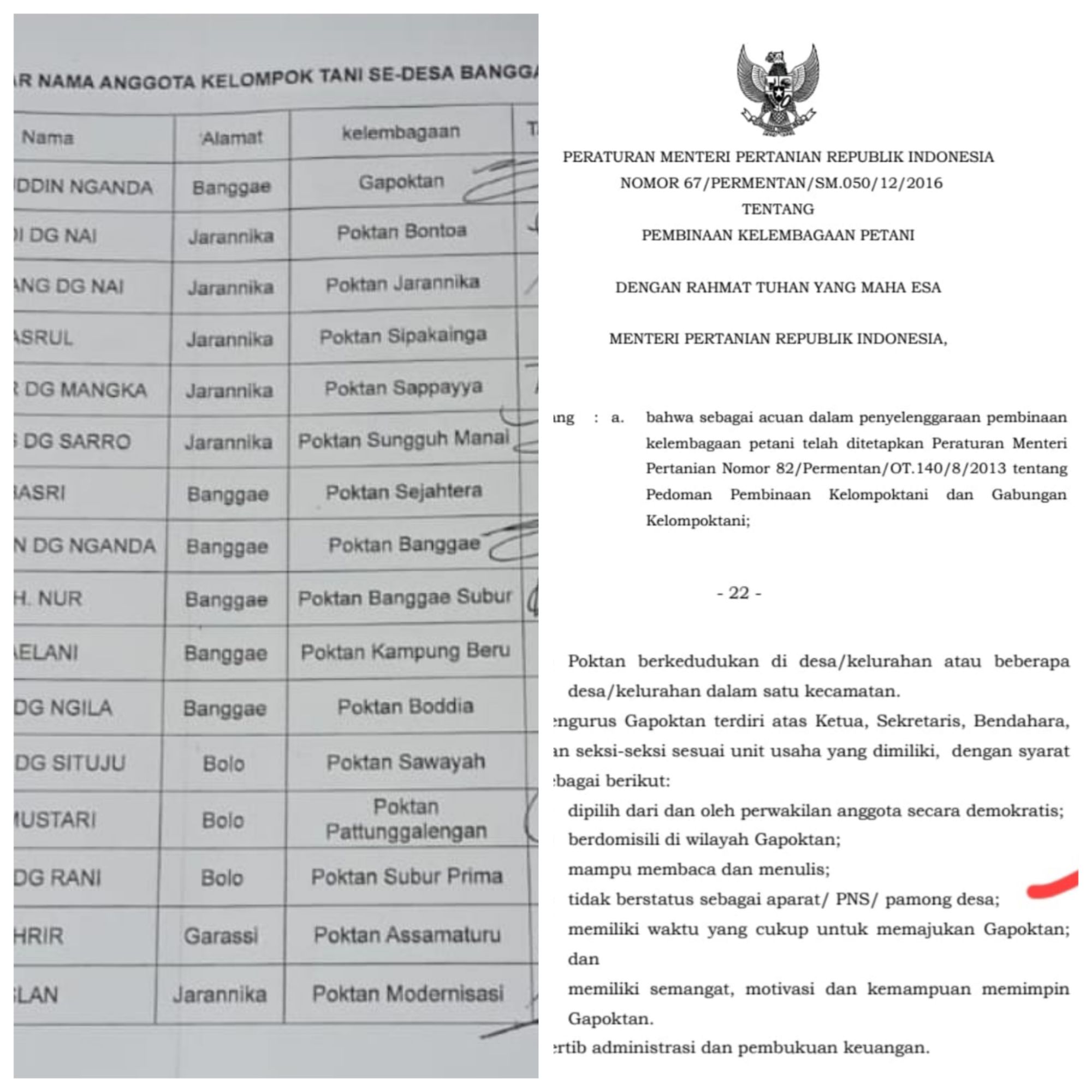 Cakar Elang.id ~ TAKALAR, 1 April 2025 – Salah satu oknum Aparatur Sipil Negara (Guru) di Kecamatan Mangarabombang, Kabupaten Takalar, kembali menjadi sorotan setelah dugaan pelanggaran terkait peran rangkap yang dilakukannya. Oknum ASN tersebut, yang juga menjabat sebagai Ketua Kelompok Tani/Poktan dan Ketua Gabungan Kelompok Tani (Gapoktan) di Desa Banggae, diduga melanggar ketentuan yang diatur dalam Peraturan Menteri Pertanian (Permentan) Nomor 67 Tahun 2016.