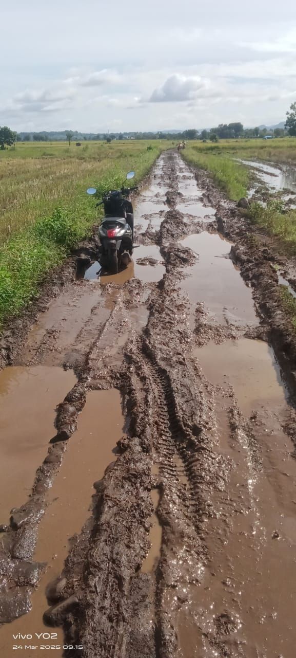 Jalan yang seharusnya menjadi urat nadi distribusi hasil tani justru menjadi hambatan utama petani dalam mengangkut hasil panen. Terlebih saat musim hujan, jalan tersebut berubah menjadi kolam lumpur yang dalam. “Kalau dibilang ini jalan tani, seharusnya bisa dilalui traktor, bukan malah layak ditanami padi,” keluh salah satu warga dengan nada getir. 08/04/2025