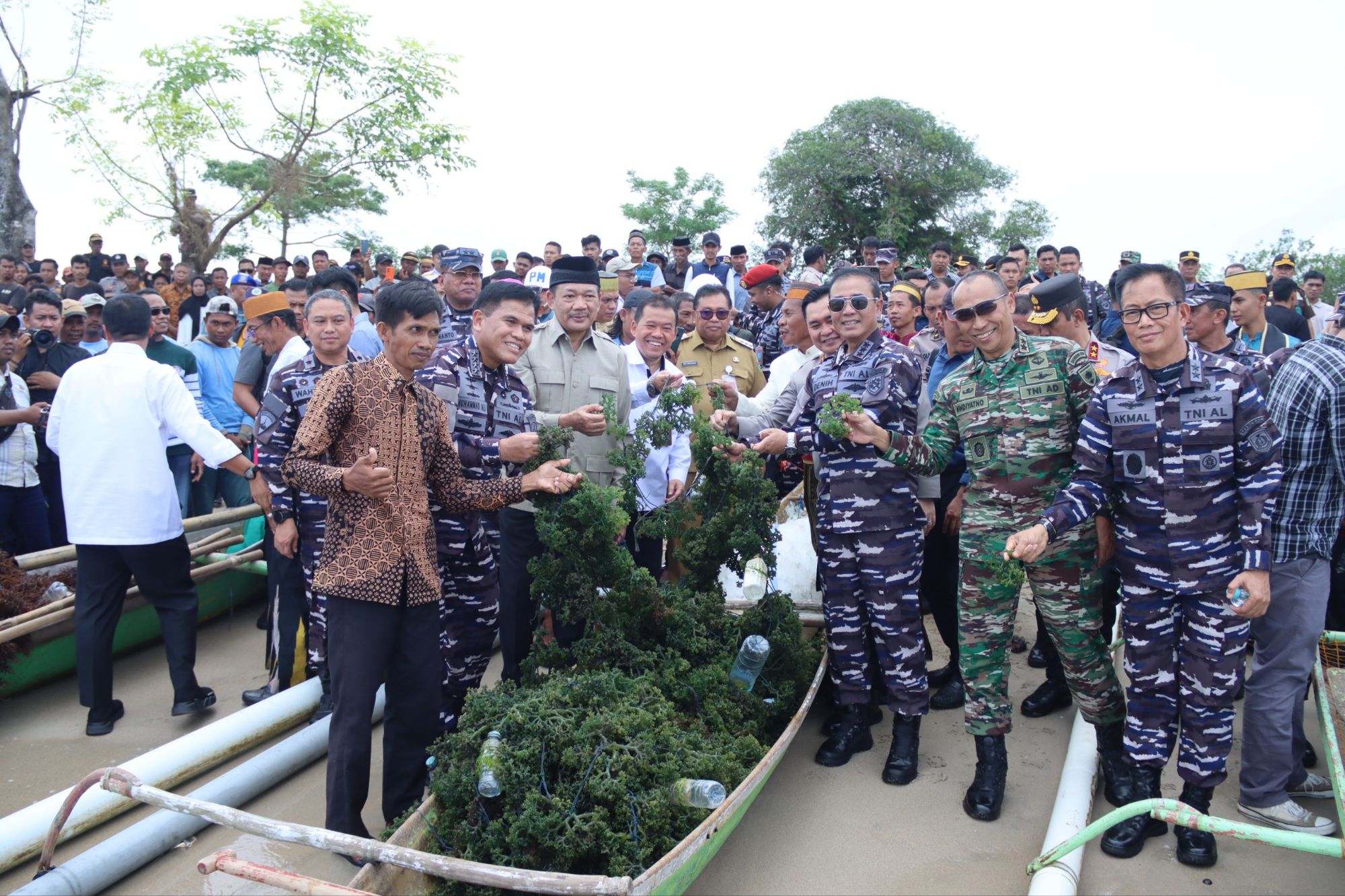 Olehnya itu, KSAL menegaskan, TNI AL mendukung penuh program ketahanan pangan melalui beberapa kegiatan produktif seperti yang dilakukan hari ini. Yaitu, panen budidaya rumput laut, pengembangan budidaya kacang kedelai, penanaman 1.000 bibit mangrove, pemberian bantuan 1.000 sembako kepada nelayan dan petani. Termasuk, pelaksanaan program MBG untuk 1.000 siswa dan bakti kesehatan.