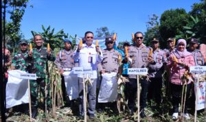 Wakil Bupati Takalar Dr. H. Hengky Yasin, S.Sos,.MM melakukan Panen Raya Jagung bersama Forkopimda Takalar, Jumat (16/5/2025).