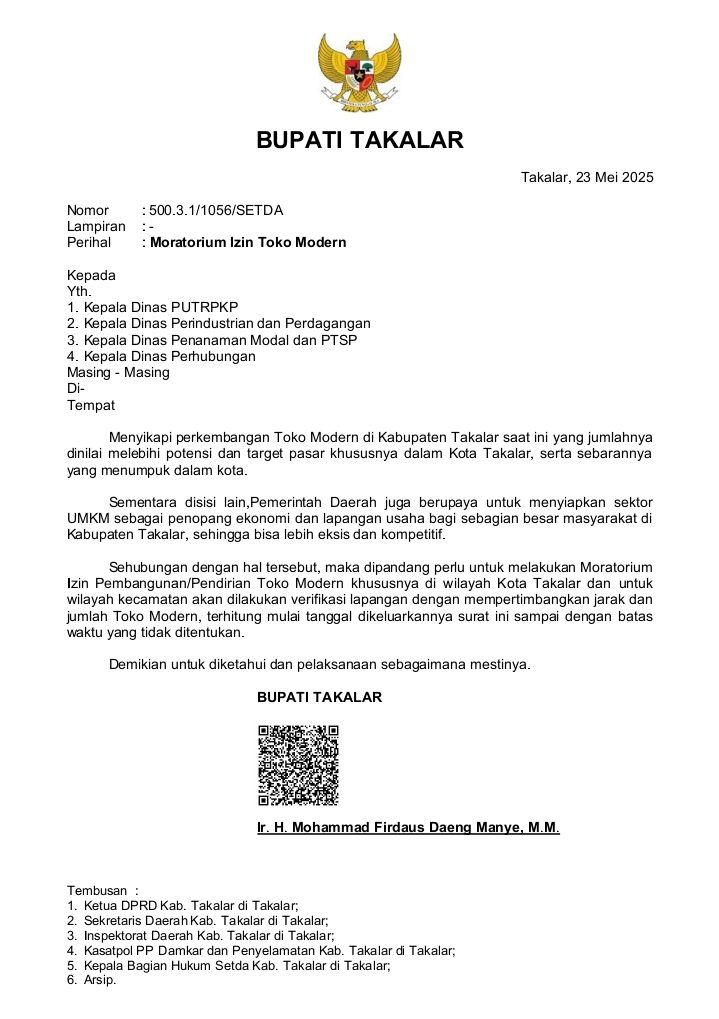 waktu yang tidak ditentukan.”demikian surat tertanggal 23 Mei 2025 yang ditandatangani Bupati Takalar.