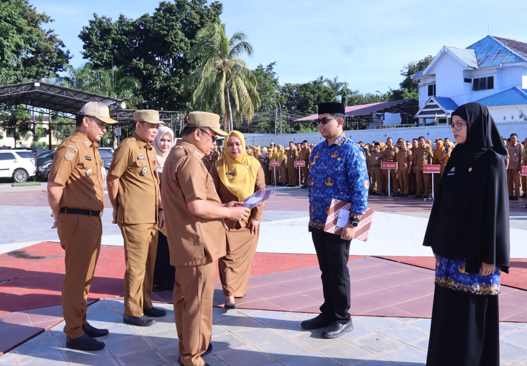 Penyerahan SK yang dirangkaikan dengan Apel Gabungan Organisasi Perangkat Daerah berlangsung di Lapangan Upacara Kantor Bupati Takalar, Senin 26 Maret 2025 dan dihadiri Wakil Bupati Takalar, Sekda Takalar, Pimpinan OPD Kab. Takalar, para Camat se-Kab. Takalar serta para Staf Lingkup Kab. Takalar.