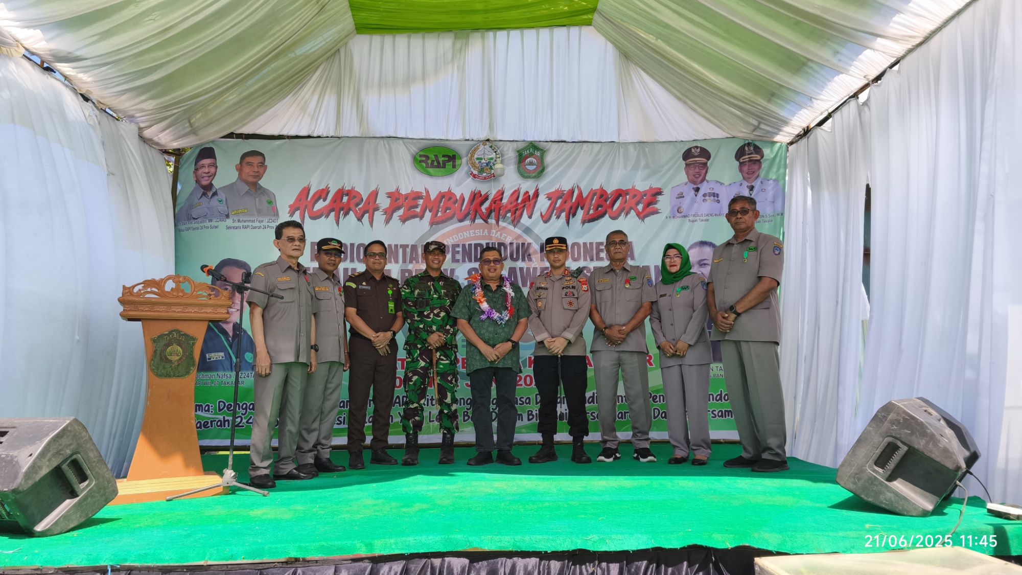 Bupati Takalar Ir. H. Mohammad Firdaus Daeng Manye,. MM menghadiri dan Membuka Jambore Radio Antar Penduduk Indonesia (RAPI) Daerah 24 Sulsel yang berlangsung di Pantai Wisata Topejawa Kecamatan Mangarabombang Kab. Takalar, Sabtu (21/6/2025).