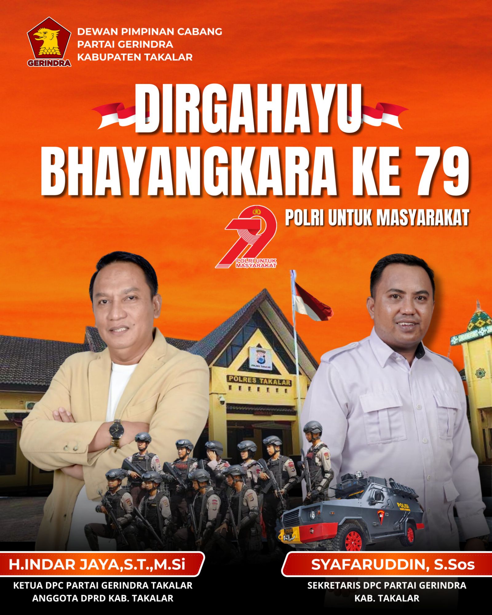 Cakar Elang.id ~ Takalar, 1 Juli 2025 — Dalam momentum peringatan Hari Bhayangkara ke-79, anggota DPRD Kabupaten Takalar dari Fraksi Partai Gerindra, Haji Indar Jaya, menyampaikan pesan politik yang sarat makna dan menyejukkan hati. Beliau menegaskan bahwa keamanan dan ketertiban masyarakat tidak akan tercapai tanpa sinergi yang baik antara institusi kepolisian dan para pemangku kebijakan, termasuk para legislator di daerah.