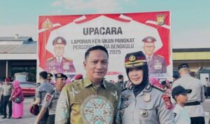 Cakar Elang.id ~ Bengkulu — Suasana haru dan penuh cinta menyelimuti pelantikan kenaikan pangkat Kombes Pol dr. Agustini, Sp.PK, M.Kes. di Mapolda Bengkulu. Momen sakral ini menjadi lebih istimewa karena dihadiri langsung oleh suami tercinta, Haji Indar Jaya, yang merupakan anggota DPRD Kabupaten Takalar. Dengan mata berbinar penuh kebanggaan, walau terpisah jarak dan waktu, Haji Indar Jaya mendampingi sang istri dalam perjalanan karier yang luar biasa di tubuh Kepolisian Republik Indonesia.