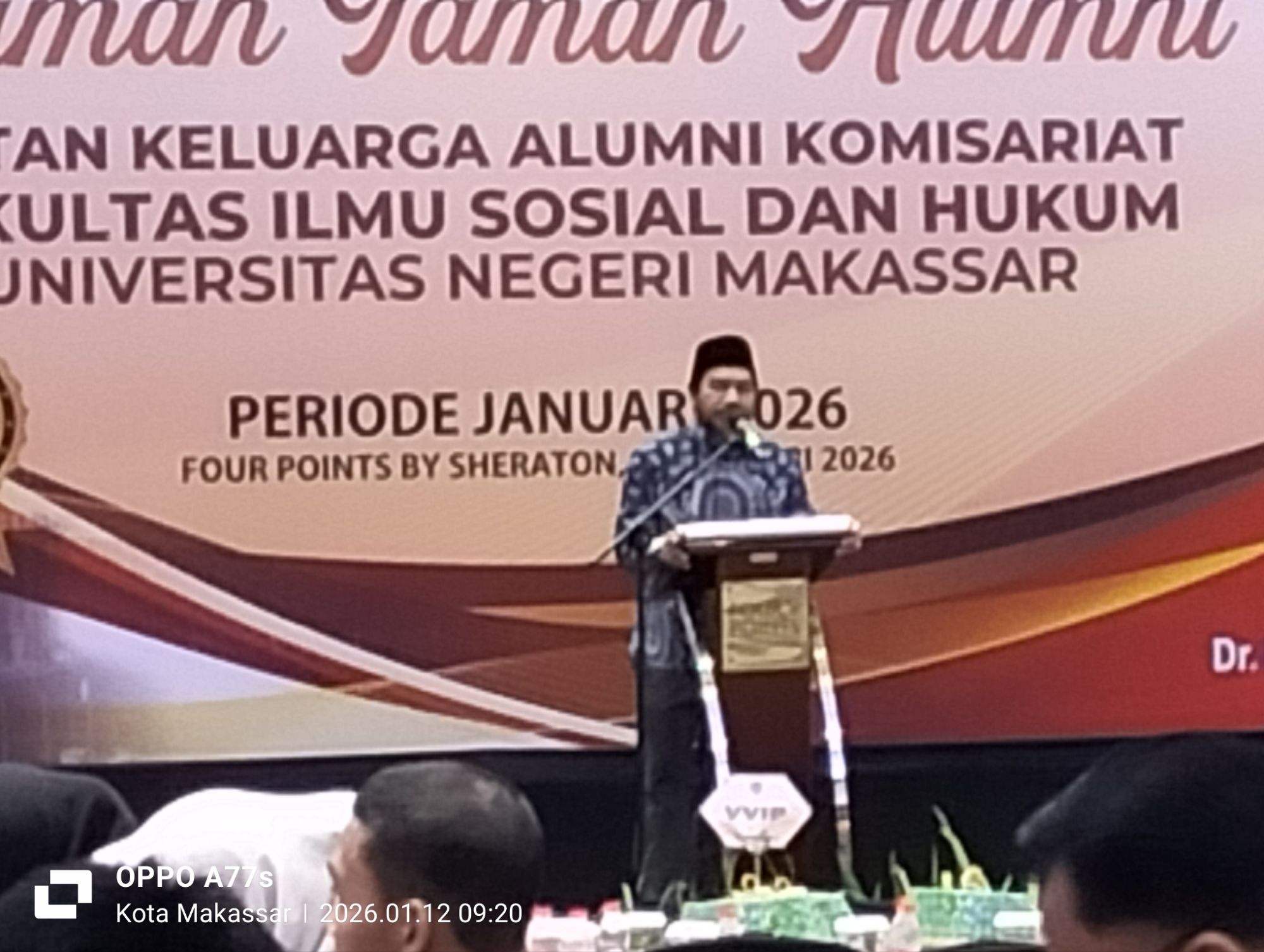 Cakar Elang.id ~ Makassar ~ Ikatan Keluarga Alumni Komisariat Ilmu Sosial dan Hukum Universitas Negeri Makassar (UNM) menggelar kegiatan Ramah Tamah Alumni Periode Januari 2026 yang berlangsung hangat dan penuh makna di salah satu hotel di Kota Makassar. Kegiatan ini menjadi ruang silaturahmi sekaligus refleksi akademik bagi para alumni lintas angkatan yang kini berkiprah di berbagai bidang profesional.